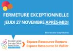 LE 27 NOVEMBRE APRES -MIDI FERMETURE EXCEPTIONNELLE
