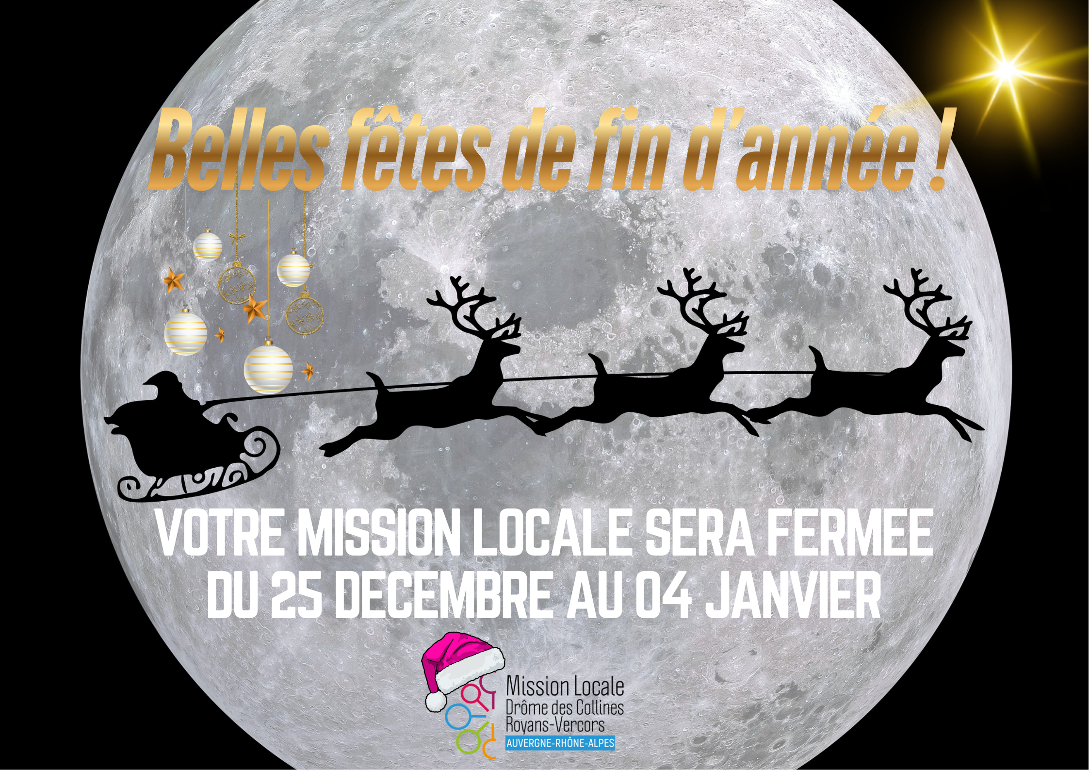 POUR LES FÊTES DE FIN D'ANNEE VOTRE MISSION LOCALE SERA FERMEE DU 25 DECEMBRE AU 4 JANVIER.